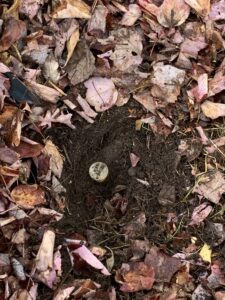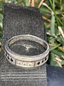 After Jim and Maureen showed me around their property, I got right to work and in no time I was able to recover Jim’s handsome sentimental keepsake! The jewel was found with my metal detector in the grass of the couple’s backyard lawn, in the vicinity of where Jim had been walking around and working near the back patio.