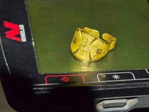 After dropping Cheryl off at home and loading my equipment up, I left for the Windham Maine Highland Lake area, arriving at 11:45am. I immediately took a photo, of the driveway and sent it to Kandy. I want to make sure I had the right property and not someone else’s. Kandy replied immediately and confirmed I had the correct property. The search area was not very large, at all. I was estimating 15-20 minutes to search the shoveled areas. I would start at the left front of the driveway, as you faced the house. I would search straight up the driveway and walkway, then turn and come down the right side of the driveway. As I started, I could see quite a few potential obstacles, in the way of large pieces of metal. While searching, large metal will mask the item, I am looking for. My metal detector cannot get within a foot or two of vehicle, lawn furniture, even houses, with aluminum siding. If the item I am looking for, is next to one of these sources of interference, I may not be able to find the item. As soon as I started, I saw a cyclone fence, lawn furniture and other metal objects. If I was unable to locate the phone, because of this metal, I would need to go back and use my pinpointer, sticking into the snow and hoping it picks up the phone. Let’s hope it doesn’t come to that.