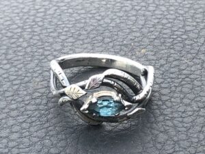 In the European way, Cheyene uses her hands a lot as she talks. But a flip of her hand resulted in the heirloom piece coming off. She had the sense that the ring ejected from her hand in an upward motion. But there was snow all around, including thick bushes, steps and landscaping. The ring could be anywhere.