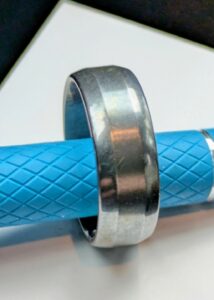 On Monday afternoon, I went back to the park to resume the search. I brought a friend as I was confused how a Titanium ring that would have been on the surface, yet maybe hidden in the grass was not being detected by my metal detector. We spent about a half hour searching that same grassy area. All we were finding were coins and junk. A short time later, ringing up as a nail or piece of foil, there was the ring, hiding in the grass! And it was within the area the app on Natalia’s phone said it would be! Pretty SMART! I was probably as happy as Natalia was when I texted her the picture of her ring. The lesson is, never overlook the “trash” settings on your detector.