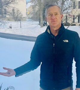 We were met by Marissa and she showed me where her car was parked, when her engagement ring came off. It was a very small area and I could see all the disturbed snow, where Marissa and her fiance’ had been searching, without any luck. After throwing a gold test ring, in the snow and showing Marissa how the metal detector works, I got down to business. I performed an east/west grid search. A few targets were heard but I knew they weren’t the engagement ring. I then searched the area again, this time in a north/South grid pattern. Still no engagement ring was found. I had only been searching for 10 minutes and already had searched the very small area, twice, with no luck. I then expanded the search, to just over the piles of snow and within a few minutes, I received the tone I was listening for. A nice low tone, reading 15-16 on the detectors VDI screen. A classic gold target, for a small ring. I grabbed my pinpointer and located the target, in the snow. Once located , I could see the outline of a ring, with some stones but couldn’t make out the color of the stone. I wanted to surprise Marissa so without telling her I had found the ring, I asked her about the color of the stone and she replied “The diamond, yellow”. I then reached down, picked up the ring, from the snow and asked, “Is this it?’ As Marissa walked towards me I could see her eyes welling up and she then thanked me, as she turned away from the camera. Marissa then gave me a hug and I could see the happy tears. What a great feeling it is to be able to help people like Marissa. She was possibly an hour away from having her diamond plowed and lost forever or even damaged, beyond repair. As the weather was brutally cold, Marissa then went back inside her apartment and Cheryl and I quickly jumped back in our vehicle and turned the heat up.