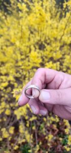 after his work was done. He tried searching with a metal detector for a few days on his own with no luck. Searching and wondering where his ring was lost a brush pile and immediate area was searched. After a 1/2 hour search his ring was located in the midst of a brush pile and returned. He was ecstatic! many thanks to you for calling me and allowing me the opportunity to help return your ring!