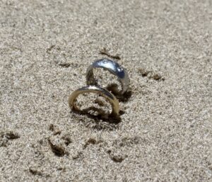 Now for the rest of the story. As I was taking photos of the first ring, Allen told me his wife had lost another ring that same day, that was why she ask him to hold the remaining ring. They believed the first ring was probably in the surf. I suggested that I take a few minutes to scan the area before leaving. 15 minutes later I found the first ring near where his wife had been playing volleyball.