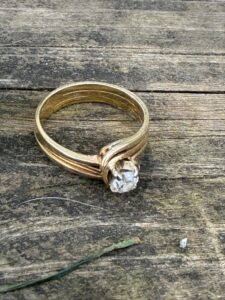 We both were able to get inside to the parking area 5 minutes before they quit allowing entry. Allen walked me to where he believed the ring had slipped out of his backpack. Boom !! I found the missing ring in a 10x10ft. area. He was ecstatic, because he wasn’t sure a metal detector could find a small ring. Also, he had felt guilty for not securing the ring in a safe place..