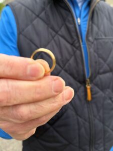 When Marissa reached out to me earlier this week, determined to find her wedding ring lost during yard work, I knew we had a challenge ahead. Given the urgency of the situation, I quickly enlisted the expertise of Stephanie Hobbsto take on the search effort as I was not able to get away. Stephanie promptly contacted Marissa, and together they mapped out a plan to scour the yard on Friday. Despite an extensive search that spanned a couple of hours and revisiting some areas multiple times, Stephanie remained optimistic and scheduled a follow-up search for Saturday morning. Undeterred by the obstacles that lay before us – from metal yard edging and woven wire fencing to reinforced concrete and sprinklers – we embarked on a meticulous search. After an hour of searching, I made a few adjustments to my Manticore, methodically working along the wire fence before making my way along the yard edging. Suddenly, a distinct two-tone signal stood out, and with careful excavation, we uncovered the wedding band nestled beneath the mulch. A surge of excitement fueled my next move, and with another swing, the two-tone signal rang out once more, revealing the engagement ring. Overcome with emotion, Marissa’s tears of worry gave way to tears of joy.