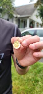 That’s when Greenwood Detecting was called in. We arrived just as the sun was setting and quickly gridded the field to make the most of the remaining daylight. After about 20 minutes, the detector gave off a perfect signal—and sure enough, the missing wedding ring was back in hand.