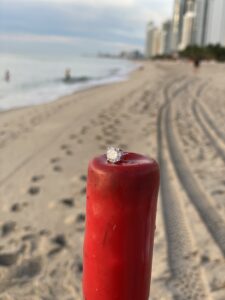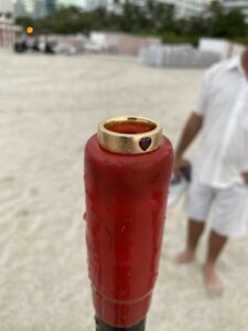 In the photos above a couple was laying out in their communities private beach and lost his ring. Similar to 100 other recoveries that I’ve done it was placed on a towel and when the towel was used to dry off, the Ring went flying. Once a ring hits the sand it’s almost impossible to find because the more you look for it the deeper it goes. After Not being able to find it, they came across my information and gave me a call. I was able to go out and help him find it. We moved a bunch of the chairs around and there it was.