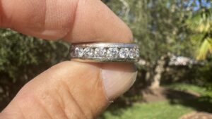 David was grooming his dog when all of a sudden his wedding band took flight! he looked for it and could not find it. He checked the internet and contacted me through the ring finders network. WE were able to recover the ring in just a few minutes. David is out of the doghouse!